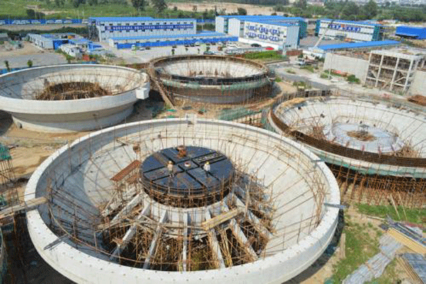 工作特點:機械攪拌(原稱機械加速)澄清池屬泥渣循環(huán)型澄清池,其特點是利用機械攪拌的提升作用來完成泥渣回流和接觸反應。加藥混合后的原水進入第一反應室,與幾倍于原水的循環(huán)泥渣在葉片的攪動下進行接觸反應。然后經(jīng)葉輪提升至第一反應室繼續(xù)反應,以結(jié)成較大的絮粒。再通過導流室進入分離室進行沉淀分離。這種水池不僅適用于一般的澄清也適用于石灰軟化的澄清。